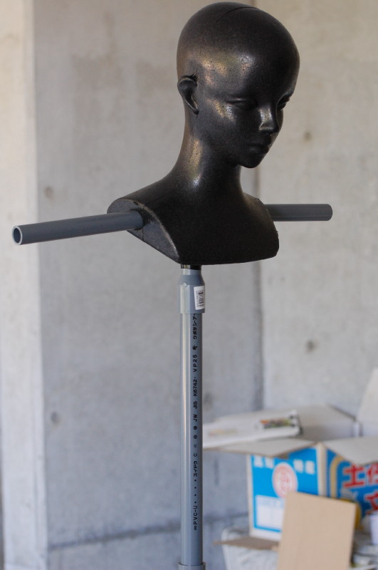Once you have all of your materials, you may need to cut some of your pieces to the appropriate size. For the arms, I basically used my own arms to get a close size approximation. I adjusted the height by cutting the thinner vertical PVC pipe you see in the diagram.